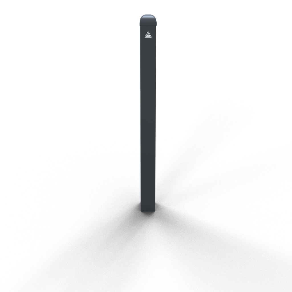 Stilpoller aus Vierkantrohr 70 x 70 mm, mit Zierkopf, ca. 950 mm Überflur, feuerverzinkt und anthrazitgrau (RAL 7016) beschichtet