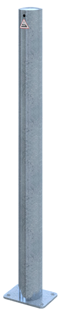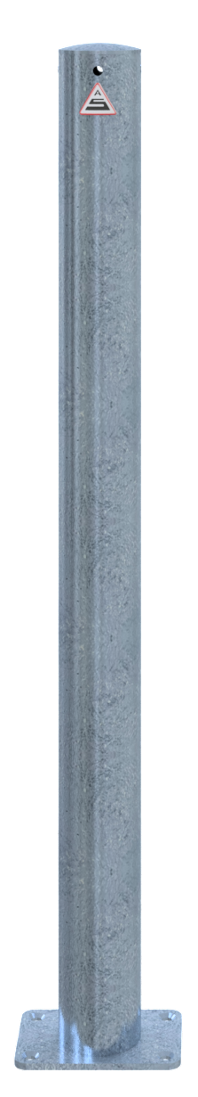 Absperrpfosten Stahlrohr Ø 76 x 2,6 mm mit aufgeschweißter Stahlkappe 900 mm Überflur ortsfest, für Dübelbefestigung mit Bodenplatte 100 x 150 mm