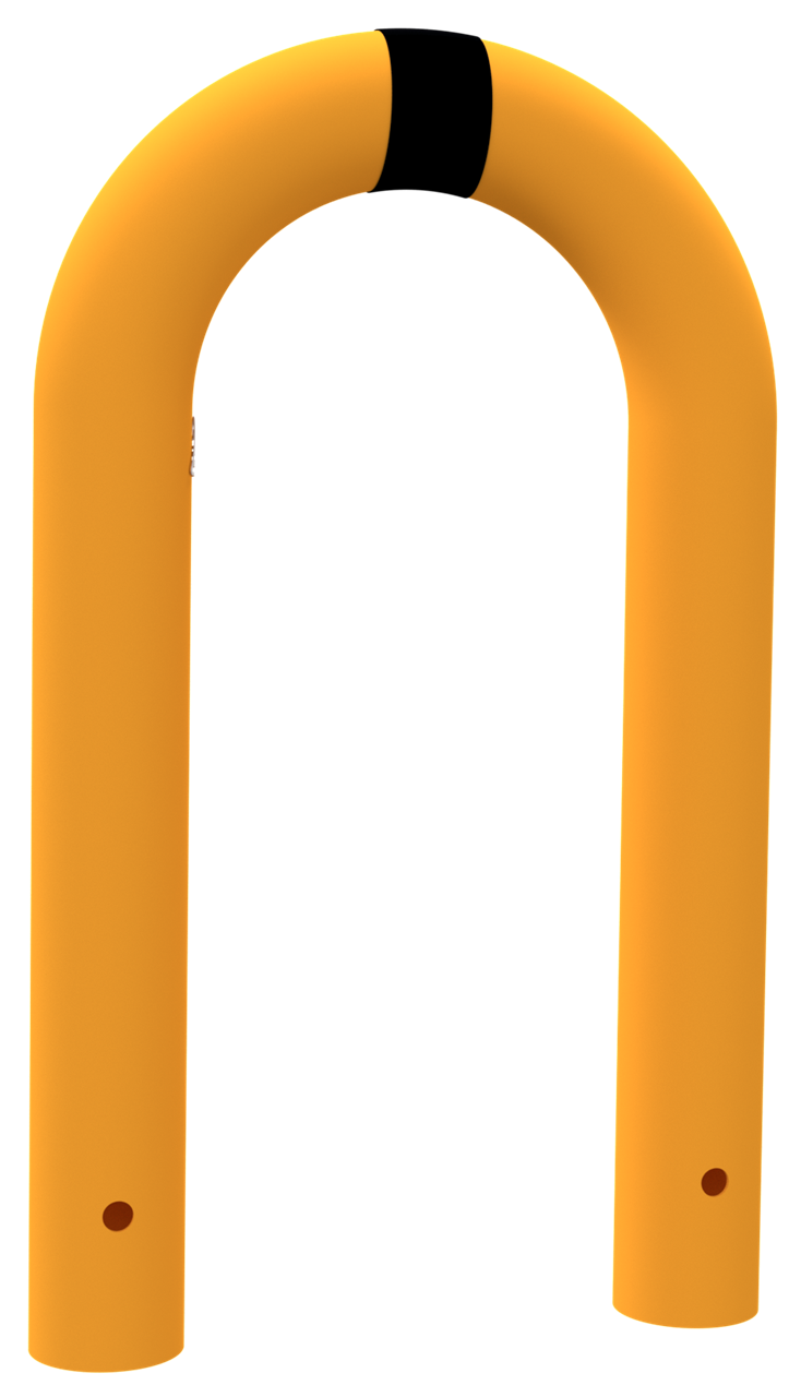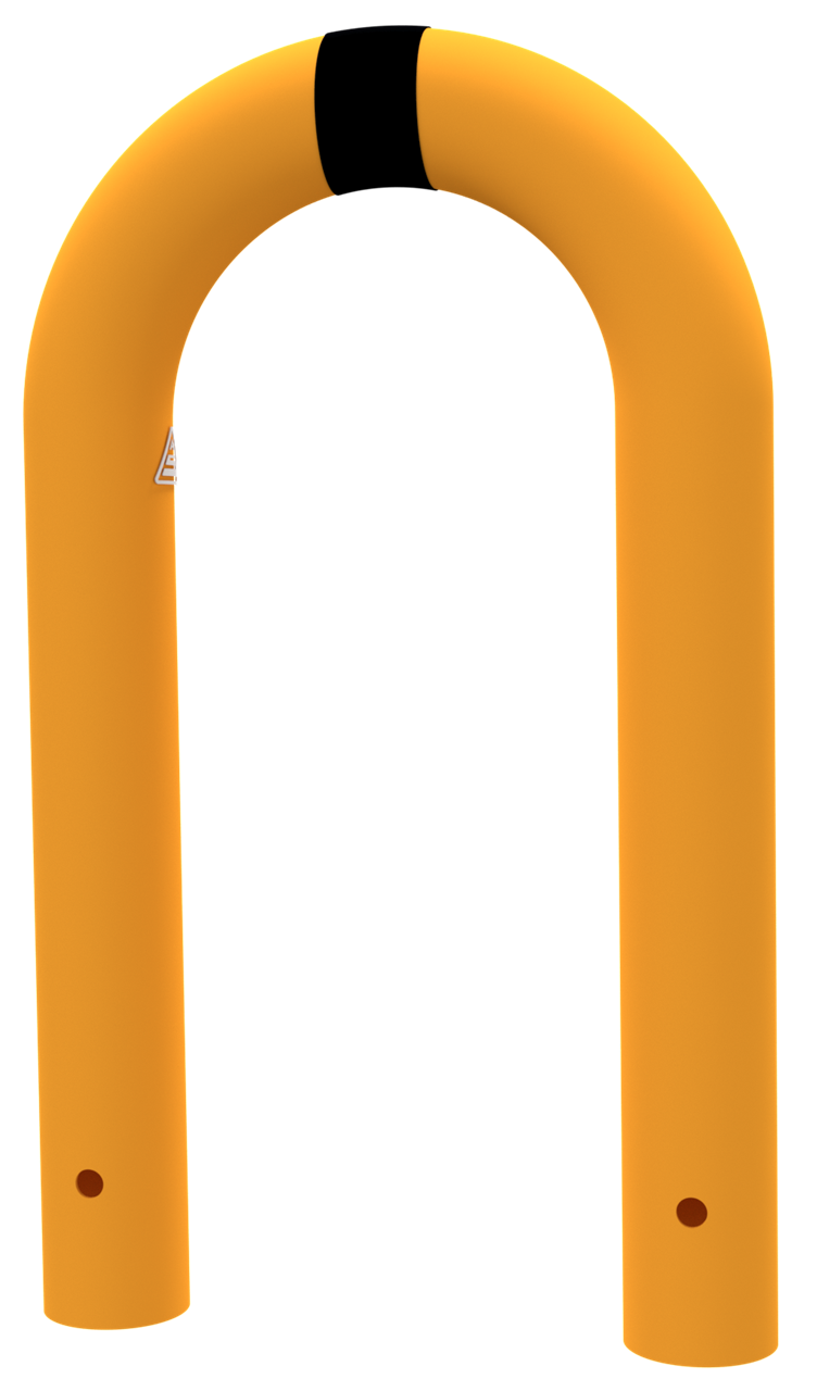 Rammschutzbügel Stahlrohr Ø 76 mm Wirkungsvoller Schutz für den Innen- und Außenbereich, für Lager und Produktion. Arbeitsbereiche und Verkehrswege sichern, Maschinen, Säulen und Regale schützen. Feuerverzinkt, gelb pulverbeschichtet mit schwarzen Warnstreifen.