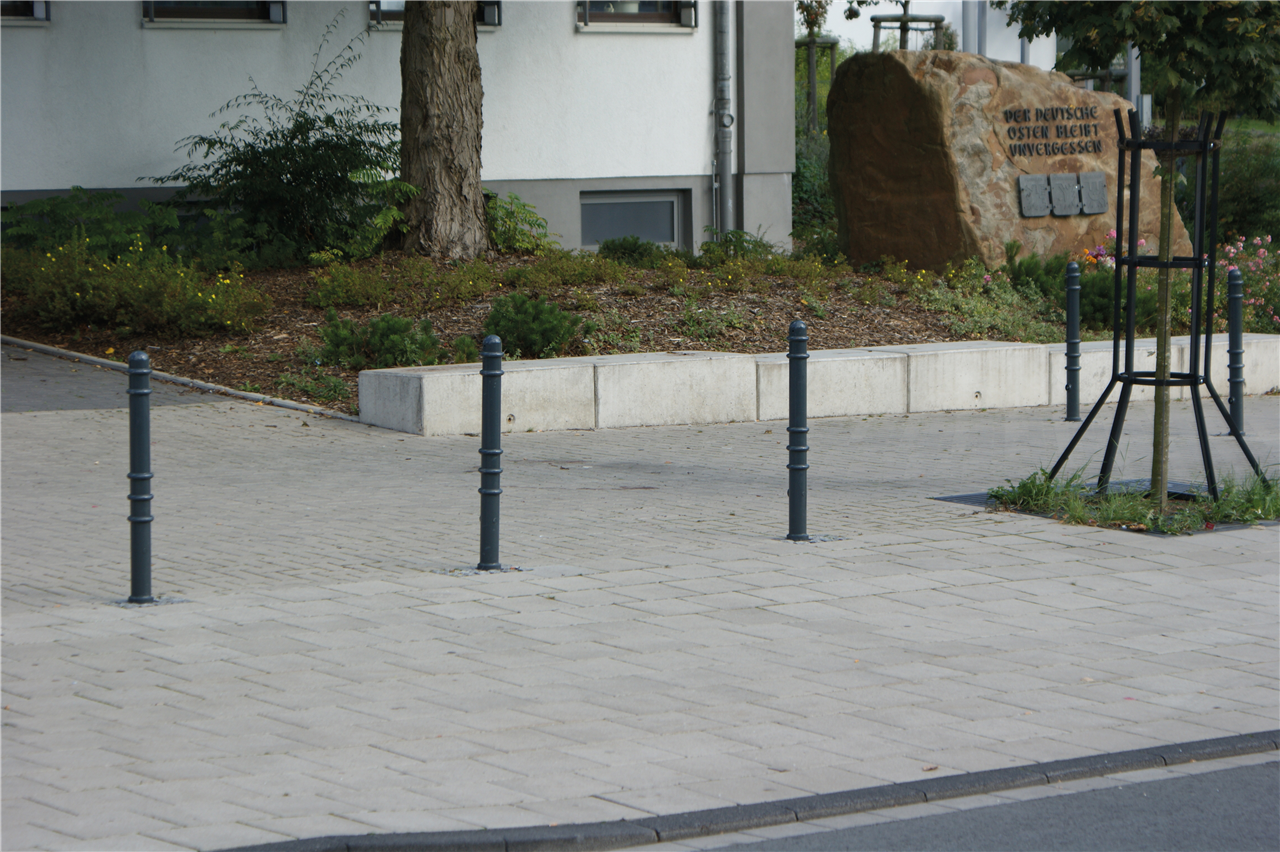 Absperr-Stilpfosten aus Stahlrundrohr Ø 76 mm ca. 950 mm Überflur, feuerverzinkt und anthrazitgrau (RAL 7016) beschichtet