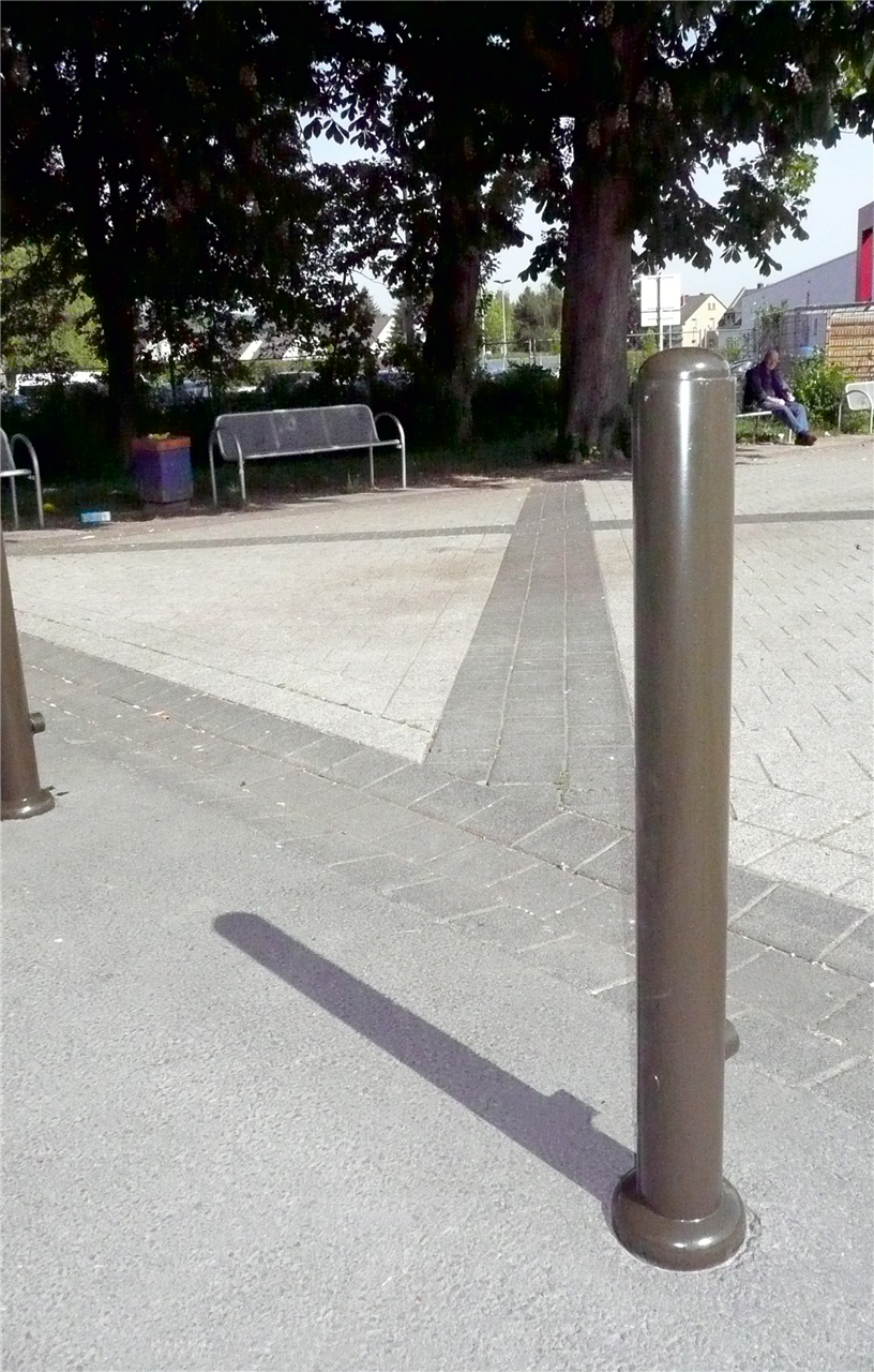 Stilpoller aus Stahlrohr Ø 82 mm ca. 800 mm Überflur, feuerverzinkt und anthrazitgrau (RAL 7016) beschichtet