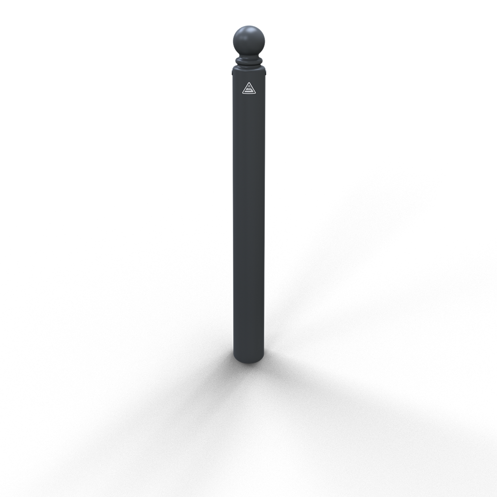 Stilpoller aus Stahlrundrohr Ø 82 mm ca. 900 mm Überflur, feuerverzinkt und beschichtet, Farbe: RAL 9005 matt (mattschwarz)