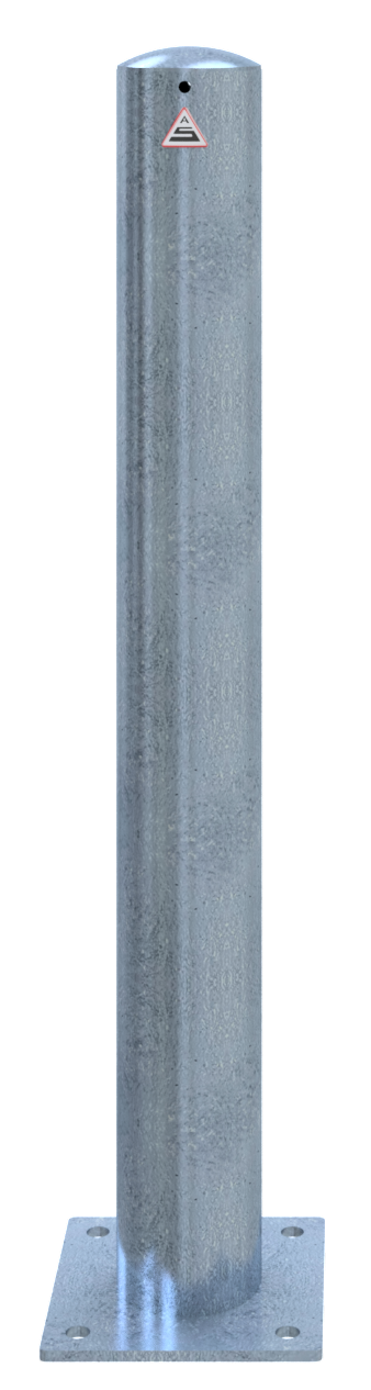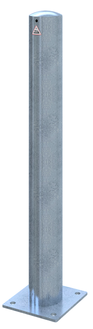 Absperrpfosten Stahlrohr Ø 108 x 2,9 mm mit aufgeschweißter Stahlkappe 900 mm Überflur ortsfest, für Dübelbefestigung mit Bodenplatte 200 x 200 mm
