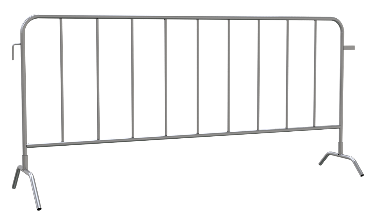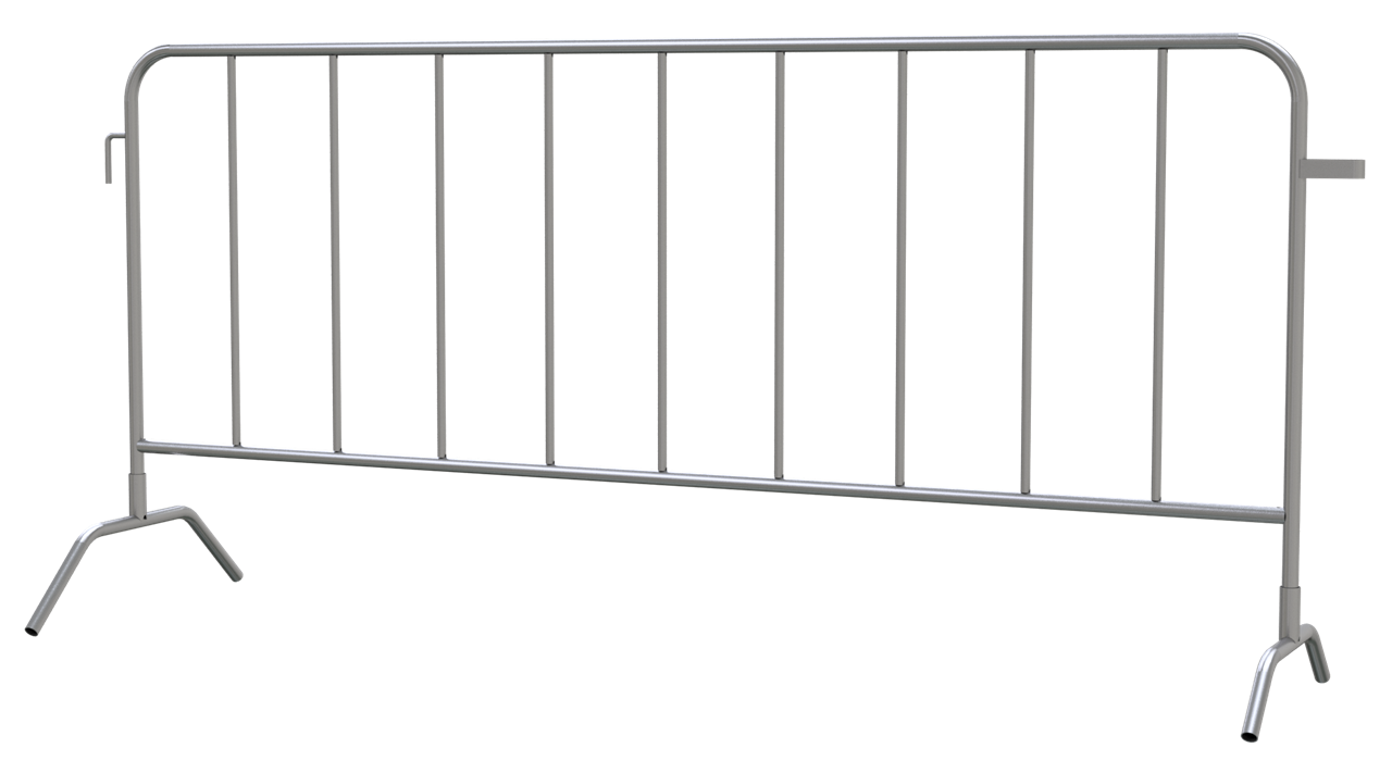 Absperrgitter verzinkt, aus Stahlrohr 27mm, mit Rundeisenhaken 13mm und Verbindungsbügeln aus Flacheisen, mit zwei angeschweißten Füßen, 9 Füllstäbe Höhe: 1,10m, Länge 2,50m