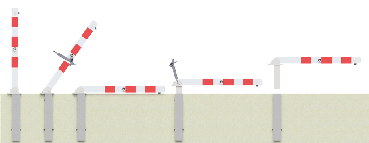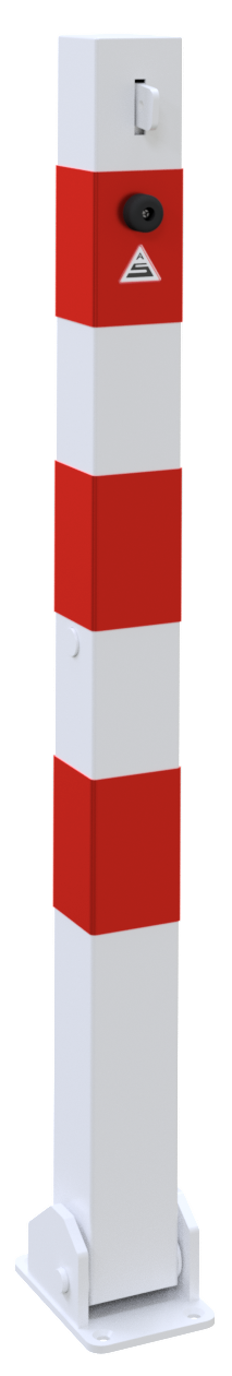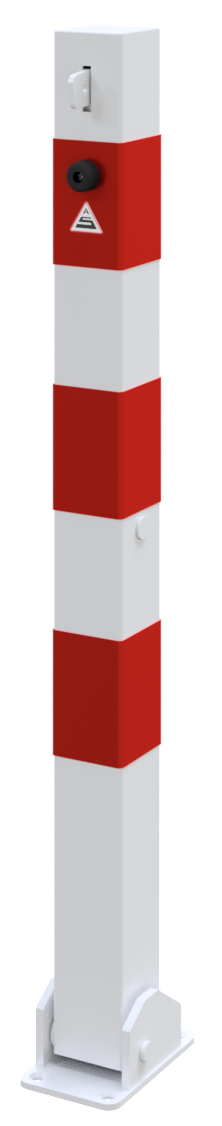 Absperrpfosten Vierkantrohr 70 x 70 mm mit Stahlkappe 900 mm Überflur umlegbar, für Vorhangschloss selbsteinrastende Verriegelung