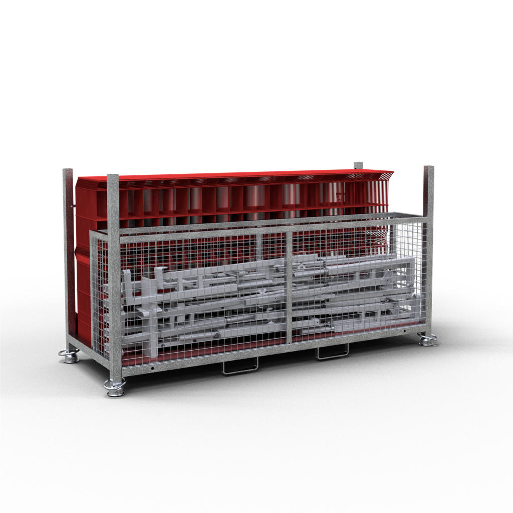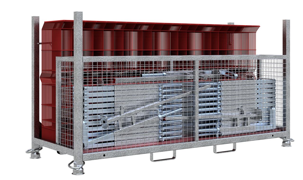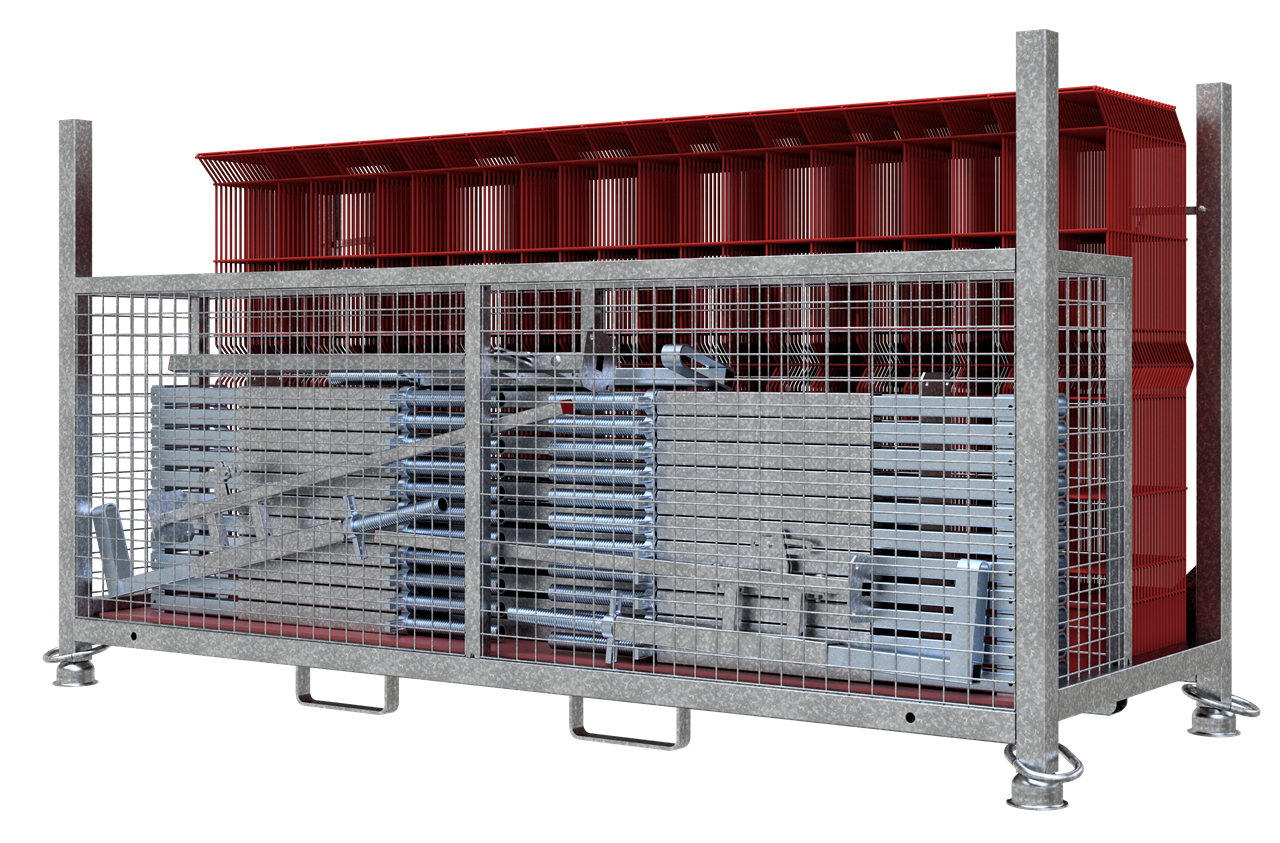 Absturzsicherung Typ Protection SET bestehend aus: 1 x Palette für Absturzsicherung Typ Protection (Art.-Nr. 112961-5) 25 x Befestigungszwinge Typ Protection (Art.-Nr. 112960) 25 x Rohbaugitter System Typ Protection (Art.-Nr. 112961)