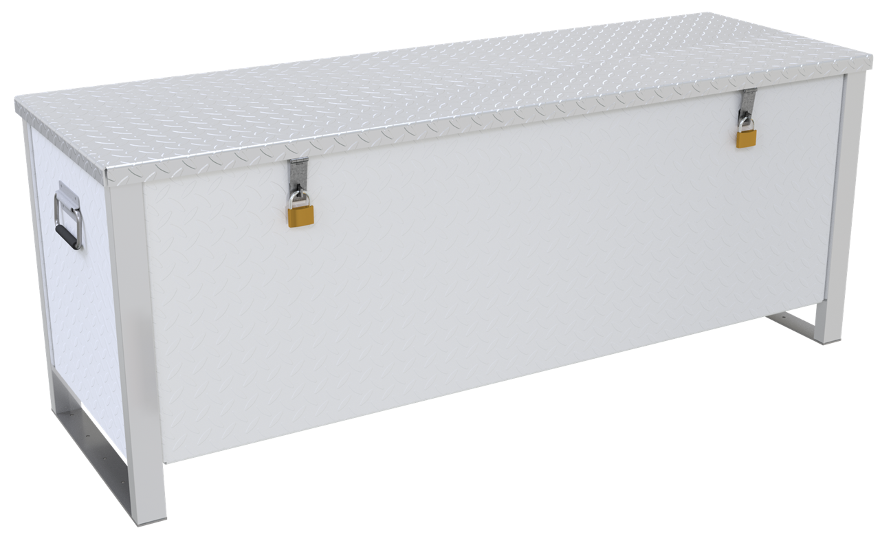 Aluminium-Transportbox Zum sicheren Lagern und Transport von Werkzeugen, Geräten und Materialien. ·Außenmaße ca. 1,55 m x 0,5 m x 0,65 m ·robuste Bauweise mit abschließbarem Gasdruckfeder-unterstütztem Deckel ·universelle Befestigungsmöglichkeiten.
