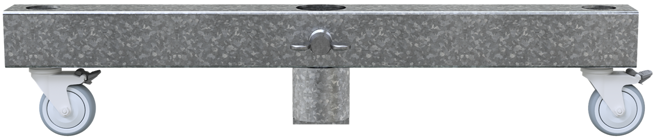 Bauzaunrolladapter zur Aufnahme von allen gängigen Mobilzäunen zum bequemen Verfahren per Rolle, verzinkte Stahlkonstruktion mit Rohrstutzen zur Aufnahme der Mobilzaunstandrohre, inkl. Feststellschraube