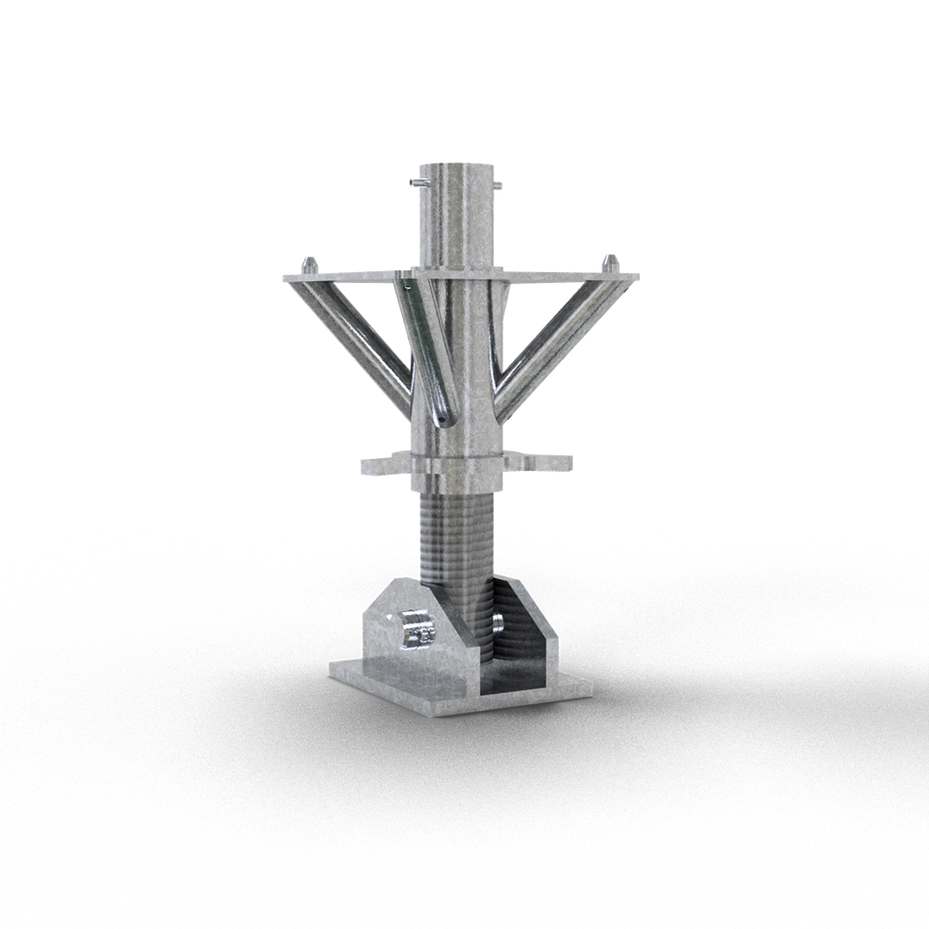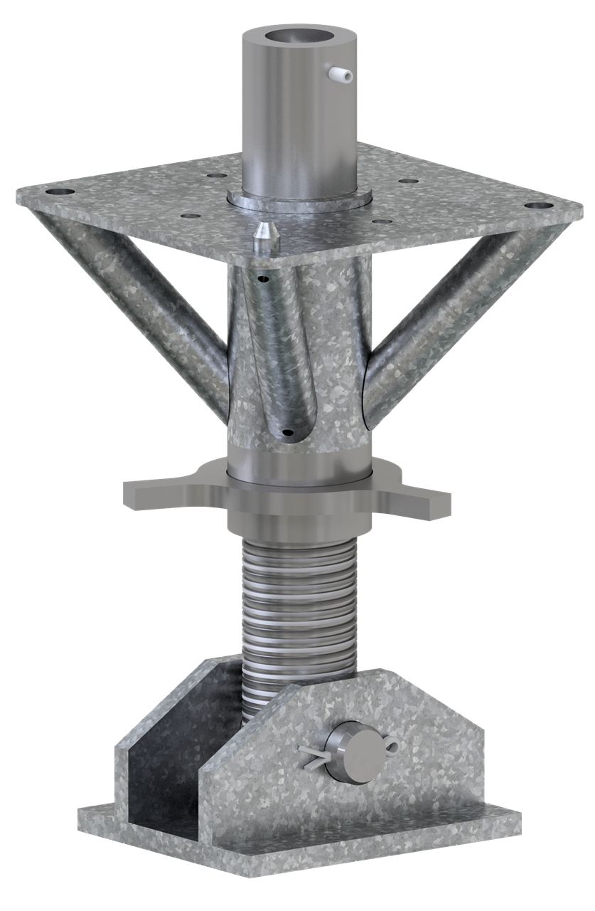 Endstück mit Spindel für Schwerlaststütze KN400 Spindel mit beweglicher Fußplatte und Aufnahme-Grundplatte zur Adaptierung der Mittelstücke mittels Zentrierzapfen, Verstellbereich 445 - 665 mm, einstellbar über Sternrad, sowohl für den Kopf als auch für den Fußbereich einsetzbar, sehr stabile Stahlkonstruktion