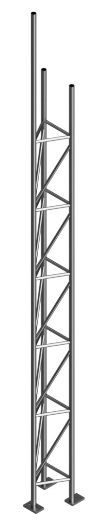 Gitterrohrmast Geeignet für Ampelanlagen und große Beschilderungen, Statik mit Aufstellrahmen. ·Grundplatte: 450 x 450 mm mit Bohrungen für die Aufnahme an Aufstellrahmen ·Standrohre: Ø 48 mm ·Querrohre / Diagonalholme: Ø 26 mm ·Ausführung: verzinkt