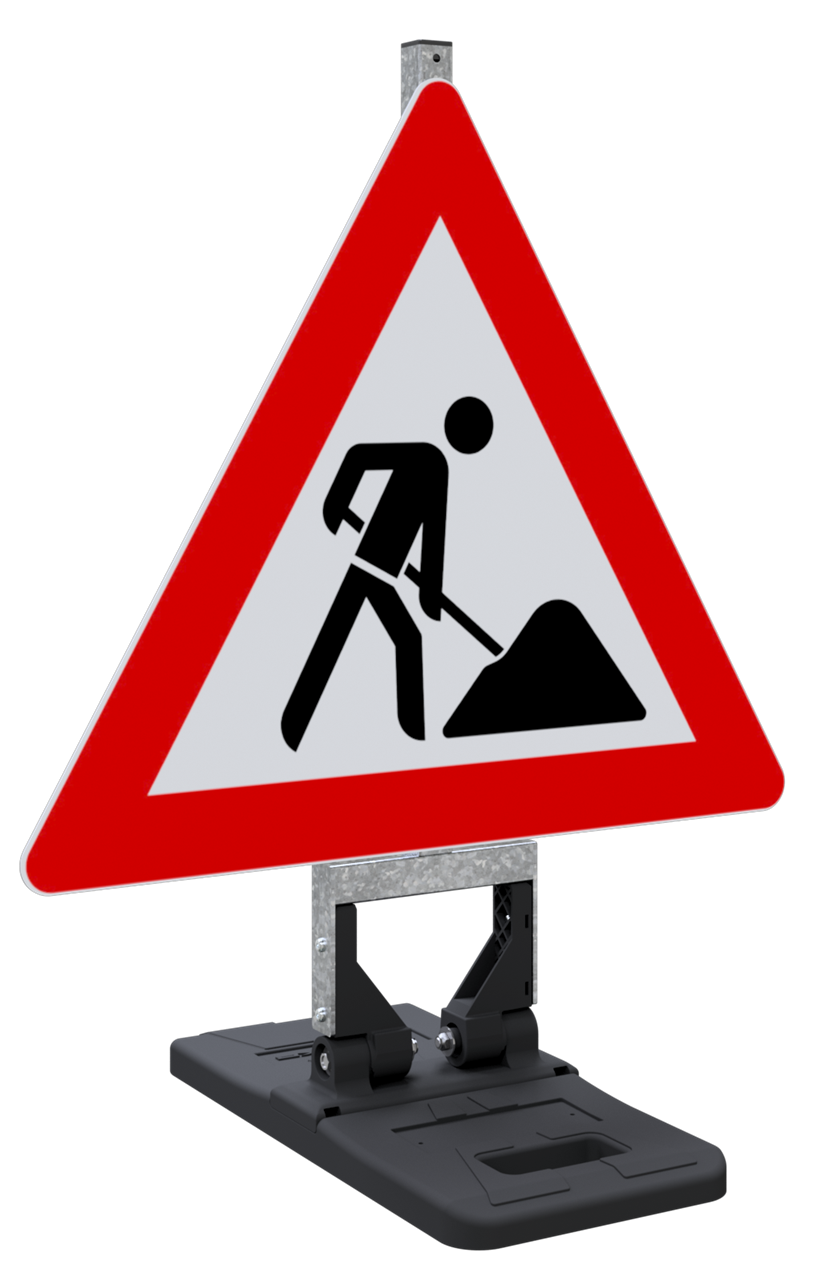 Klappschildhalterung Zum schnellen Absichern und Kennzeichnen von Baustellen. ·äußerst robuster Klappmechanismus mit zwei Gelenken ·ergonomische Tragegriffe an Fußplatte ·Fußplatte mit Anti-Rutsch System, daher kein Verrutschen auf der Baustelle ·klappt sich nach einem Crash unversehrt um und erhöht dadurch enorm die Sicherheit ·die Schildaufnahme besteht aus 40 x 40 Vierkantrohr ·Schilder können mit Schilderklemmen befestigt oder in die gelaserte Haltekontur eingehängt werden, ·nutzbare Höhe: 815 mm ·Gesamthöhe: 1100 mm