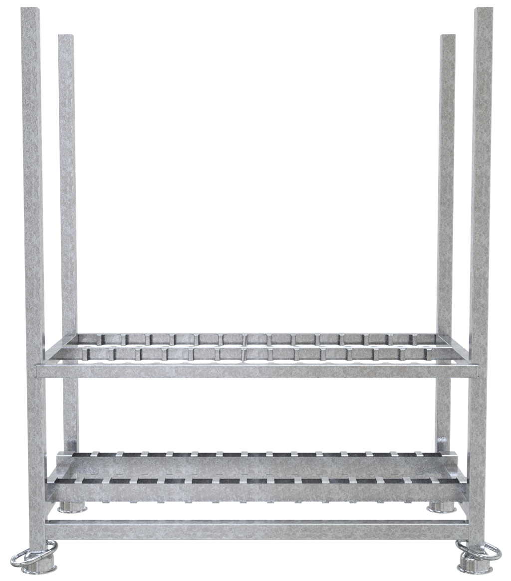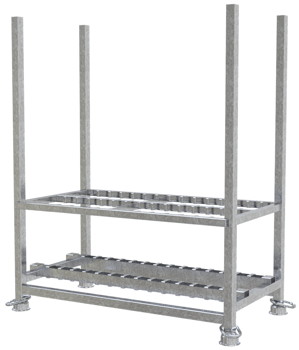 · zur Aufnahme von 30 aller Schakebaken · Baken werden stehend in einen Konturausschnitt für jede Bake positioniert für eine gute Übersicht · eine schnelle Entnahme und Bestückung · Tulpenfüße für sichere Stapelbarkeit · für Stapler- und Kranbetrieb geeignet · Ausführung: verzinkt Auch als fertig gepacktes SET verfügbar (Art.-Nr. 36055-5-SET).