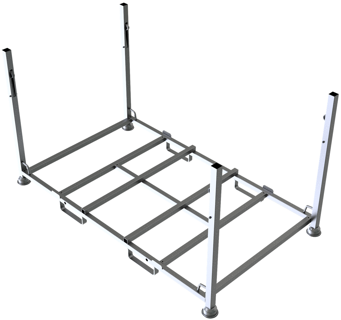· für 20 KDRF Absperrschrankengitter · 4-seitig befahrbar · Konstruktion aus 40x40 Vierkantrohr mit umklappbaren Holmen zur Entladung · Ausführung: verzinkt
