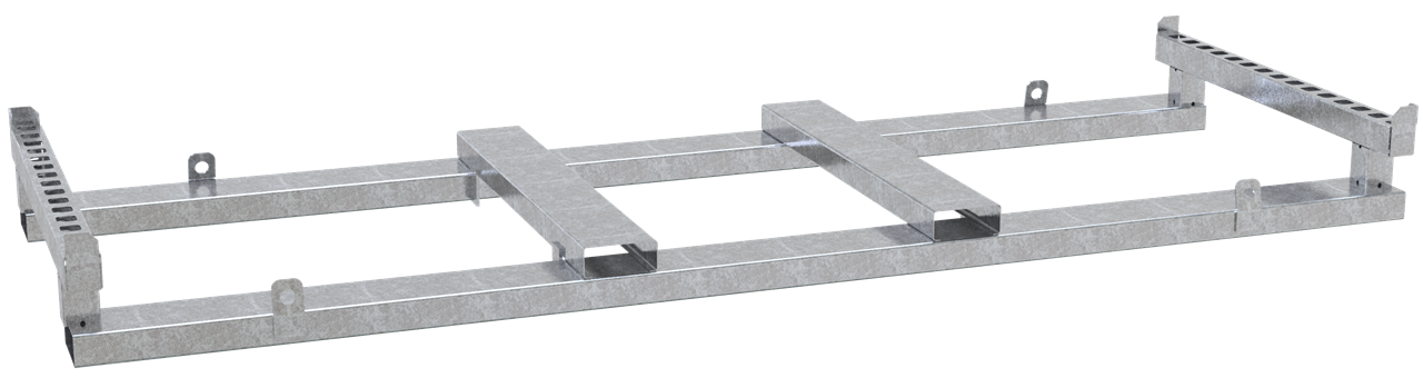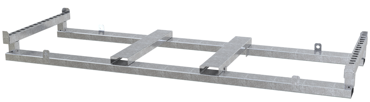 Lager- und Transporttraverse Typ L für Mobilzaun verzinkte Stahlkonstruktion zur Aufnahme von 30 Mobilzäunen 3,50m Länge, der Zaun kann auch im deformierten und verdreckten Zustand leicht in die vorgesehnen Löcher eingesteckt werden, 4- seitig befahrbar, Aufnahmekapazität: 30 Stk. Abmaße: 3,39 x 1,20 m Ausführung: verzinkt