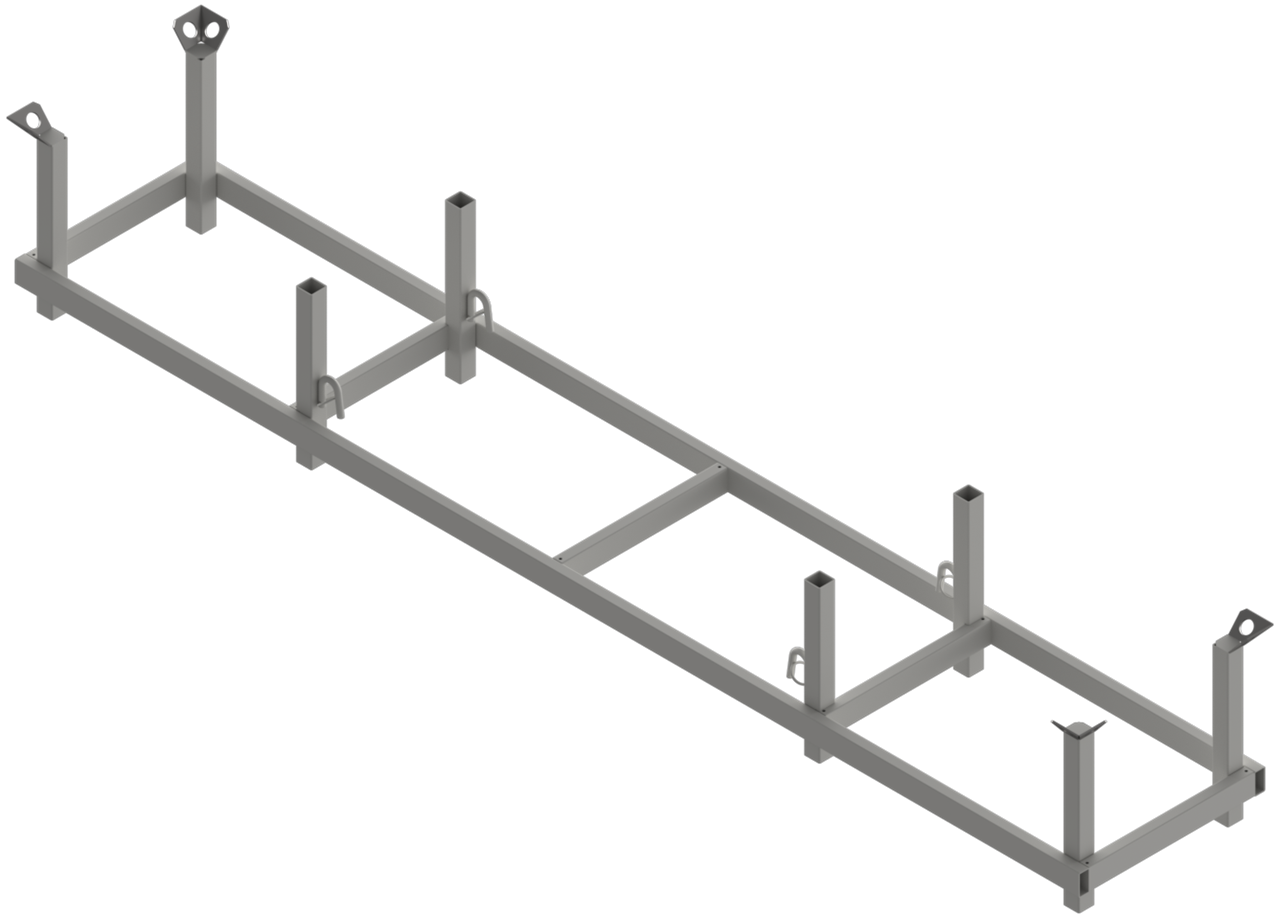 Langguttraverse Füllmaße: 3,80 m x 0,50 m x 0,40 m Außenmaße: 4,00 m x 0,70 m x 0,56 m speziell für Langgüter konzipiert kranbar und stapelfähig 4-fach stapelbar Ausführung: verzinkt