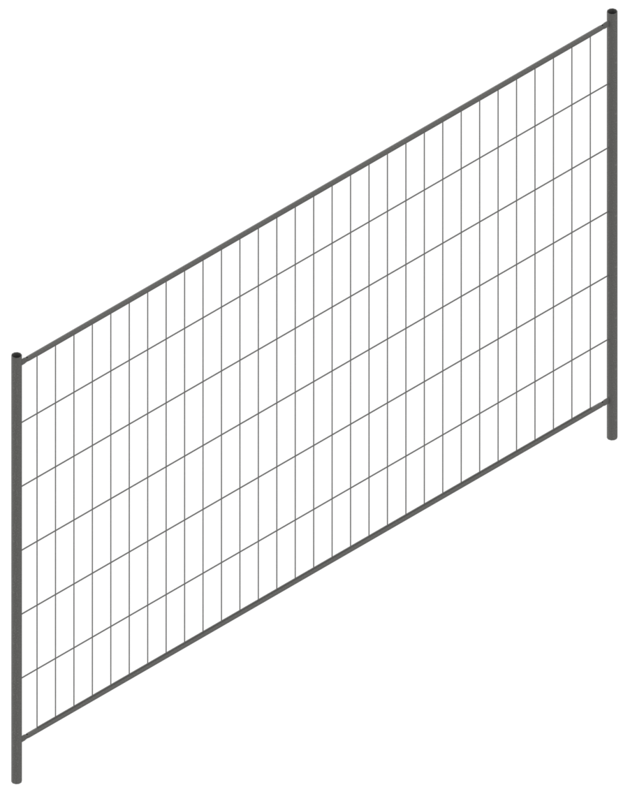 Mobilzaun "Profi 500" ·feuerverzinkt ·Maße: 2,00 x 3,30m ·mit umlaufenden Rohrrahmen ·Maschenweite 100/300 ·Drahtstärke senkrecht 3,0 mm / waagerecht 3,8 mm ·Standrohre Ø 40 mm ·waagerechte Rohre Ø 19 mm ·ohne Haken und Ösen
