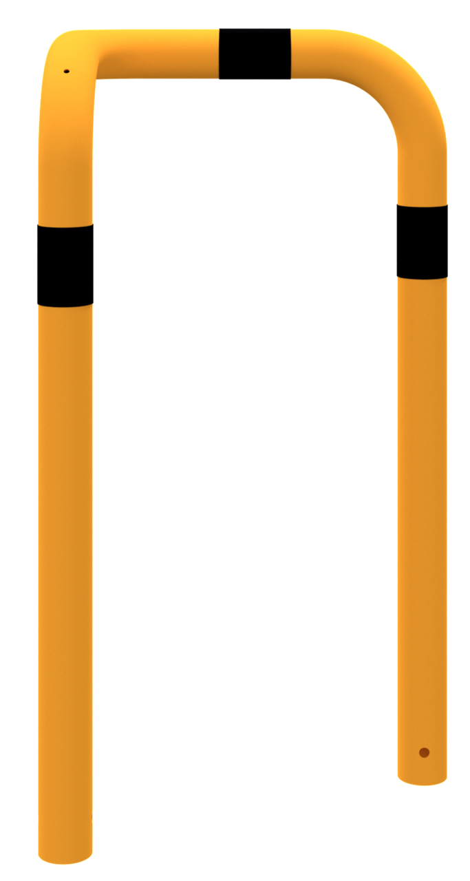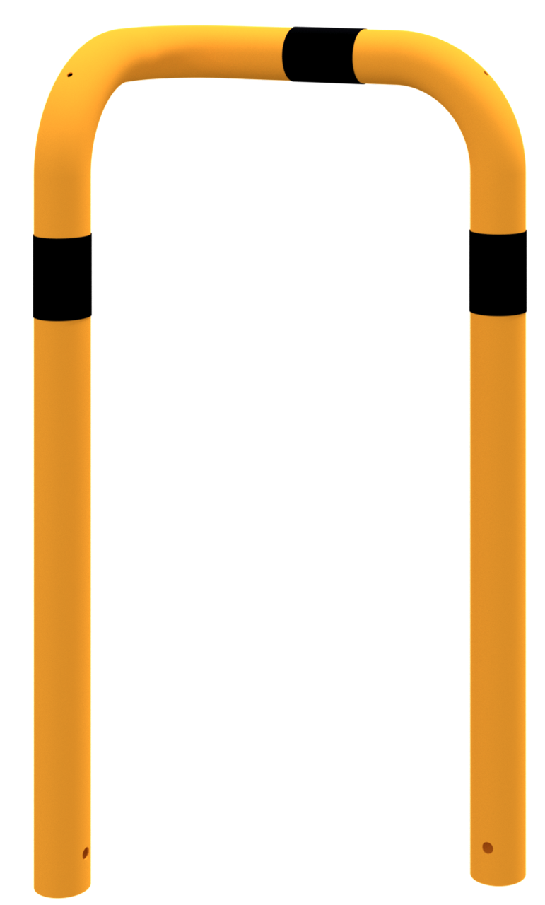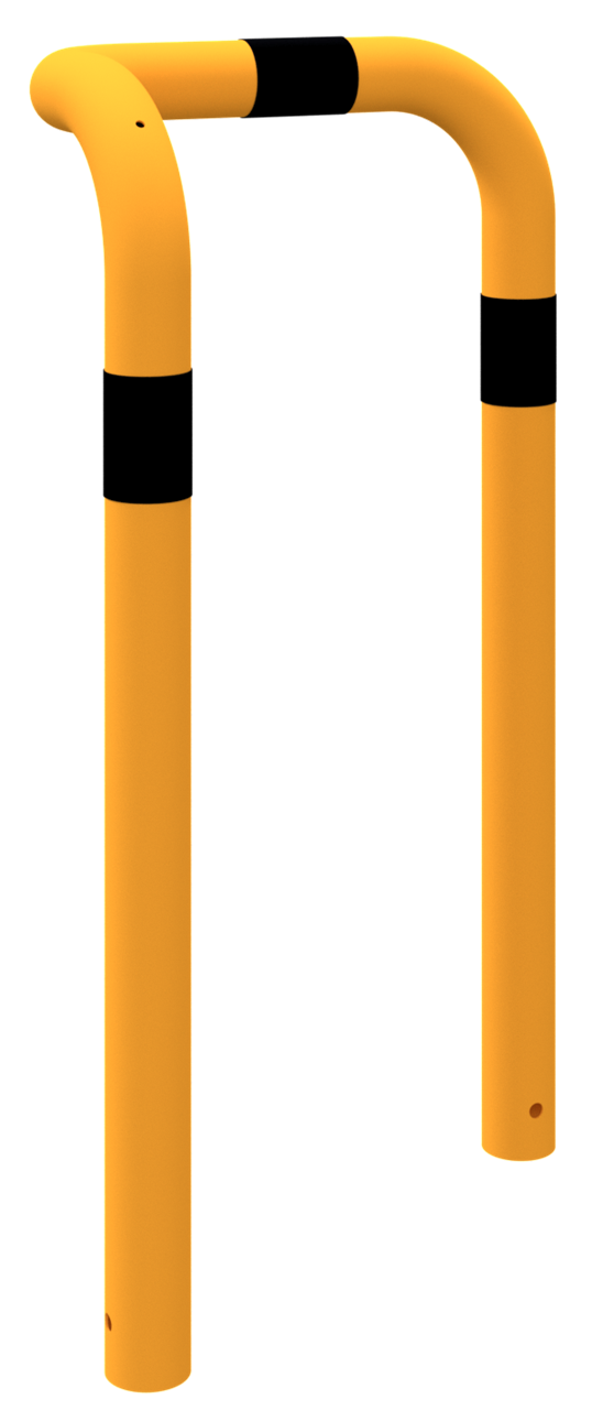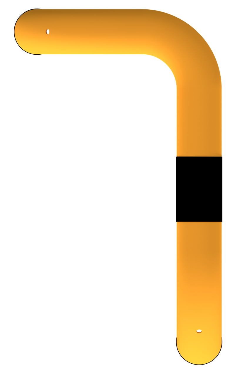 Rammschutzbügel 90° l-Form aus Stahlrohr Ø 76 mm feuerverzinkt, gelb pulverbeschichtet mit schwarzen Warnstreifen, einseitig