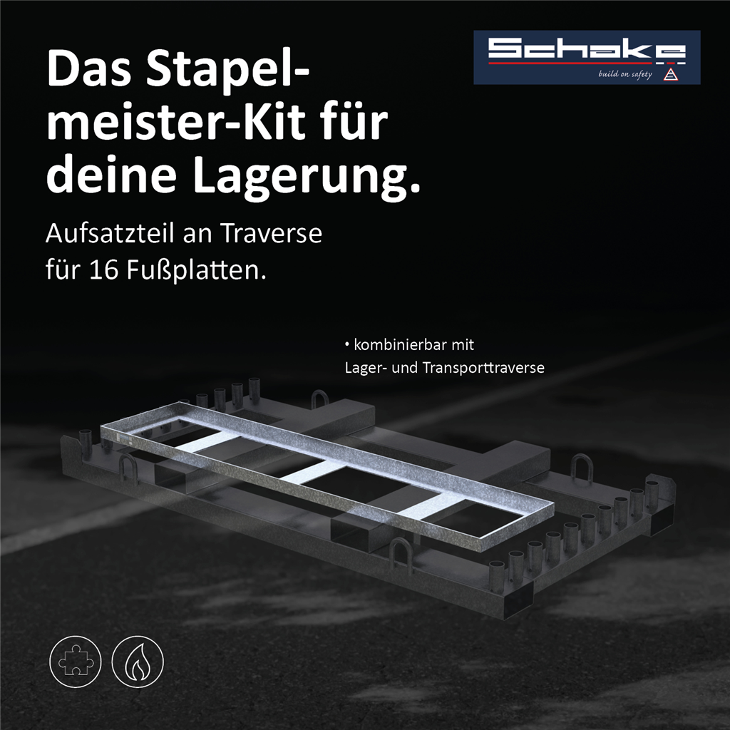 Produktinformationen "Schake SET mit 10 Absperrschrankengitter und 11 Fußplatten auf Lager- und Transporttraverse 33420KA-SET1 Schrankentyp NOX weiß"