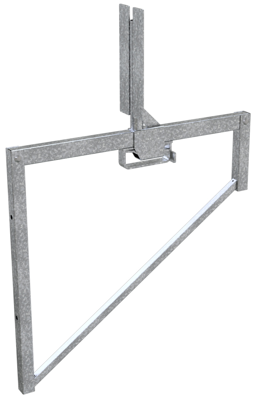 Schalungskonsole Für Deckenrandabschalungen und Deckenauskragungen. · von 100 -750 mm stufenlos verstellbar · Fixierung der Schalbreite durch Keil-Feststellung inkl. Aufnahme für Geländerpfosten z.B. Art.-Nr. 11277VG, die mit Bordbrettern versehen zu einem zulässigen System eingesetzt werden dürfen · als Randschalung können Bohlen bis 350 mm angeschlagen werden · zur Befestigung der Schalungskonsole werden ein oder zwei Rollgewindestäbe durch die Wand geführt und mit Tellermuttern verschraubt · verzinkt