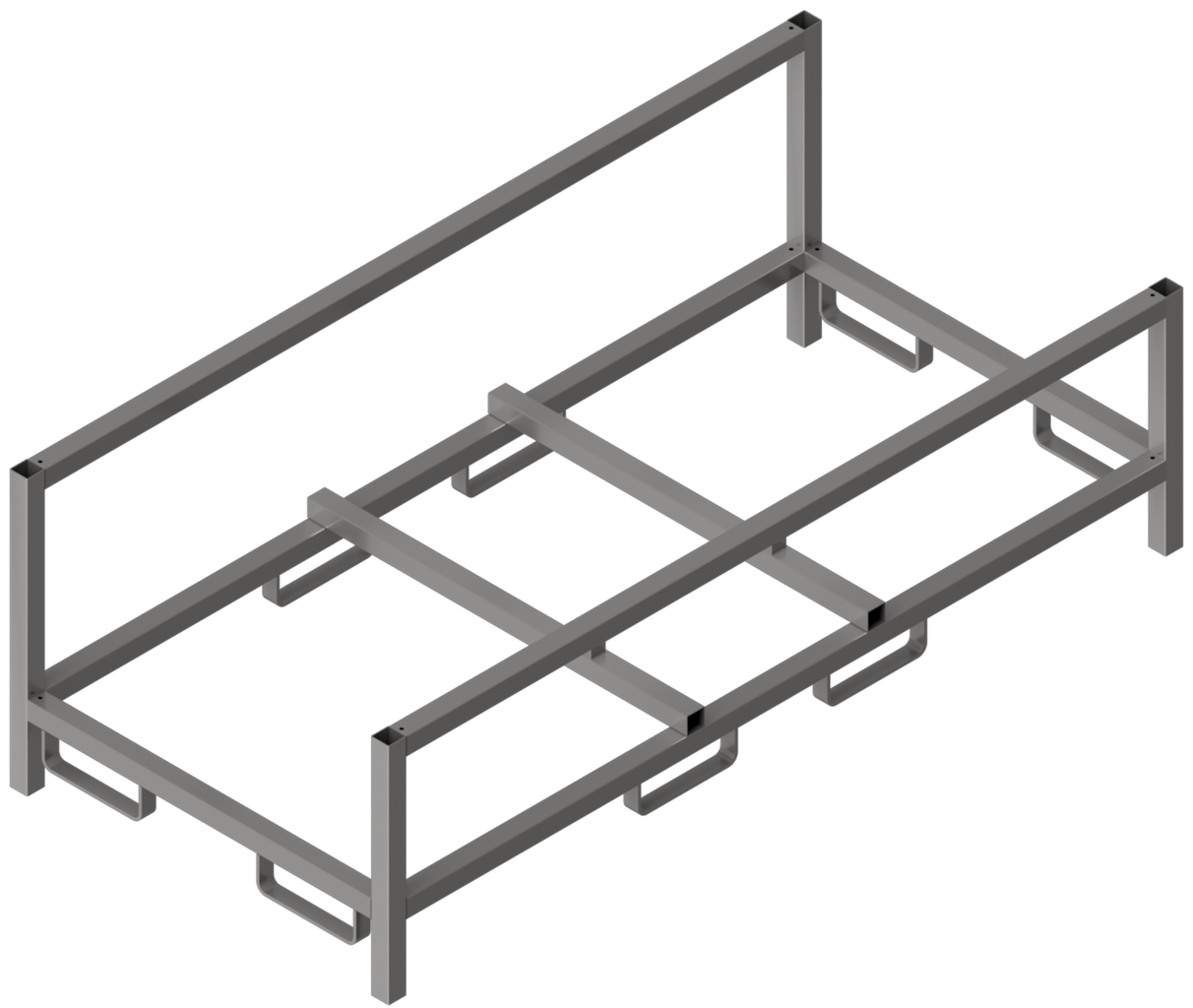 Stapelpalette für Polizeigitter Typ L Außenmaße: 2200 x 1005 x 760 mm speziell für Lagerung und Transport von 25 Polizeigittern (Art.- Nr. 419.013) Grundkonstruktion aus 60 x 60 mm Vierkantrohr gefertigt, 4-seitig befahrbar Ausführung: verzinkt