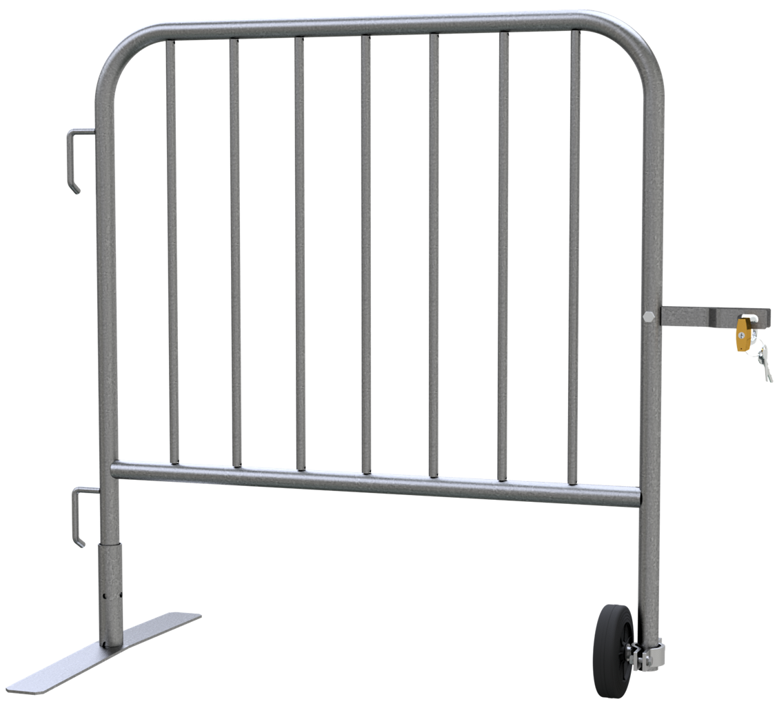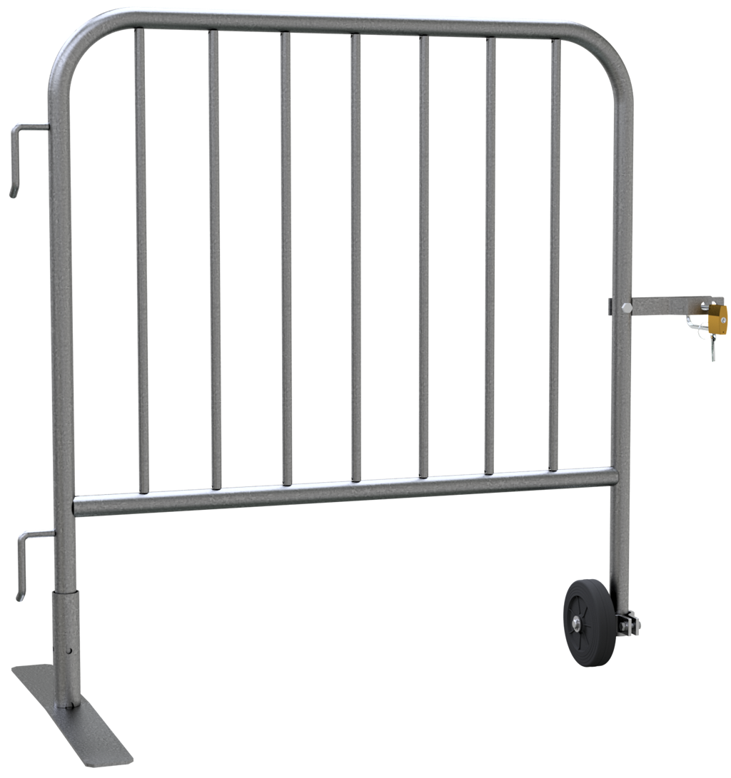 Torelement für Absperrgitter Typ D, zur Befestigung mit Haken und Ösen an Standard-Gitterelement, inkl. Laufrolle und Verbindungsglied mit Vorhangschloss, Breite ca. 1,0 m, Höhe ca. 1,1 m Ausführung: verzinkt Bestehend aus: 1 Stk. Torelement einzeln, verzinkt (Art.-Nr. 419_00T_E) 1 Stk. Fuß für Absperrgitter, verzinkt (Art.-Nr. 206181_E) 1 Stk. Laufrolle aus Gummi (Art.-Nr. 3R117) 1 Stk. Vorhangschloss (Art.-Nr. E1VHB-L63)