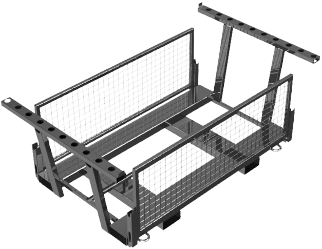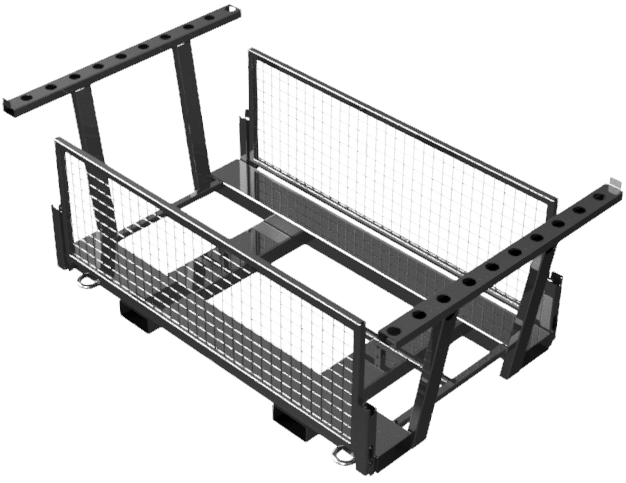 · zur Aufnahme von 20 Schrankenzäune und 20 Fußplatten · kranbar, vierseitig unterfahrbar · umlegbare Seitenteile ermöglichen sicheren Transport und zeitgleiche Entnahme von Schrankenzäunen und Fußplatten · Ausführung: verzinkt Auch als fertig gepacktes SET erhältlich (Art.-Nr. 33420K-SET4).