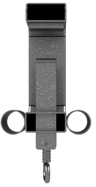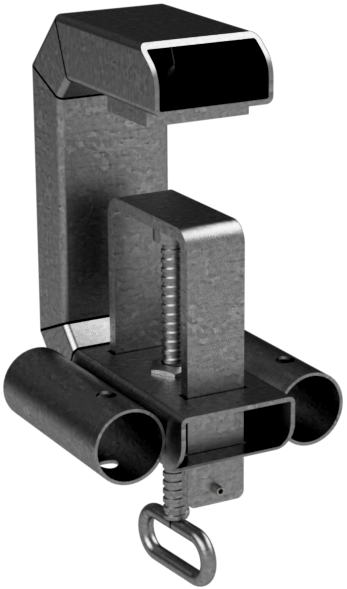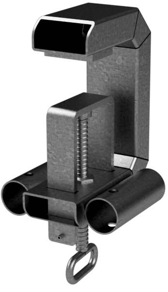 Uni-Geländerhalterung Typ B Zur einfachen Aufnahme von Ø 40 - 42 mm Mobilzaun oder Absperrschrankengitter als Absturzsicherung. ·senkrecht auf Grabenverbauwände oä. setzen und durch die Feststellschraube fest fixieren ·zwei Aufnahmestutzen Ø 48 mm ·Aufnahme von Geländerpfosten Art.-Nr. 11277VG geeignet ·verzinkt