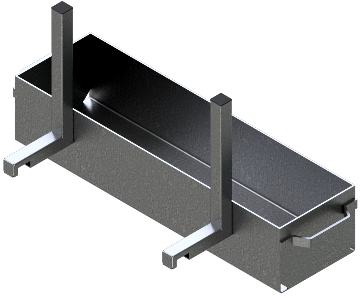Wanne für Verbindungsschellen zur Ergänzung der Twinpalette (3B212T) zum werkzeuglosen Einhängen, zur Aufnahme von Kleinteilen, Handgriffe an beiden Seite ermöglichen das Einhängen in die Kontur der Stirnseite der Twinpalette Ausführung: verzinkt