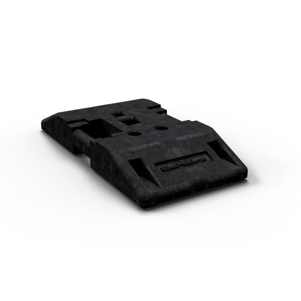 TL-Fußplatte nach K1 zum Aufstellen von Schrankenzäunen, Schaftrohren, Baken oder Bauzäunen, aus Kunststoffrecycling hergestellt, mit seitlichen Tragegriffen für eine praktikable Handhabung. Einstecktaschen: 1 x 40 x 40 mm 1 x 60 x 60 mm 2 x Ø 42 mm Abmaße: Breite: 400 mm Länge: 800 mm Höhe: 120 mm Ausführung: Kunststoffrecycling, 28 Kg Geprüft nach: TL Aufstellvorrichtungen Kennung K1, entspricht den Vorschriften der ZTV-SA Werbeflächen für Fußplatten Unsere Fußplatten können für Ihre Werbezwecke individuell gestaltet werden. Sie haben die Auswahl, ob Sie die Fußplatte mit einem Logoschild oder einer Logoprägung versehen. Diese Möglichkeiten dienen als kostengünstige Werbefläche, die einen bleibenden Eindruck hinterlassen.