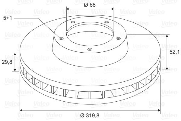 Einbauposition: VA · Bremsscheibenart: 8 · Außendurchmesser [mm]: 320 · Bremsscheibendicke [mm]: 29.8 · Zentrierungsdurchmesser [mm]: 68 · Höhe [mm]: 52.1 · Mindestdicke [mm]: 28 · Felge Lochzahl: 5 · Anzahl der Befestigungsbohrungen: 1 · Ergänzungsartikel/Ergänzende Info 2: 168 · Prüfzeichen: ECE-R90 · Gewicht [kg]: 10.52