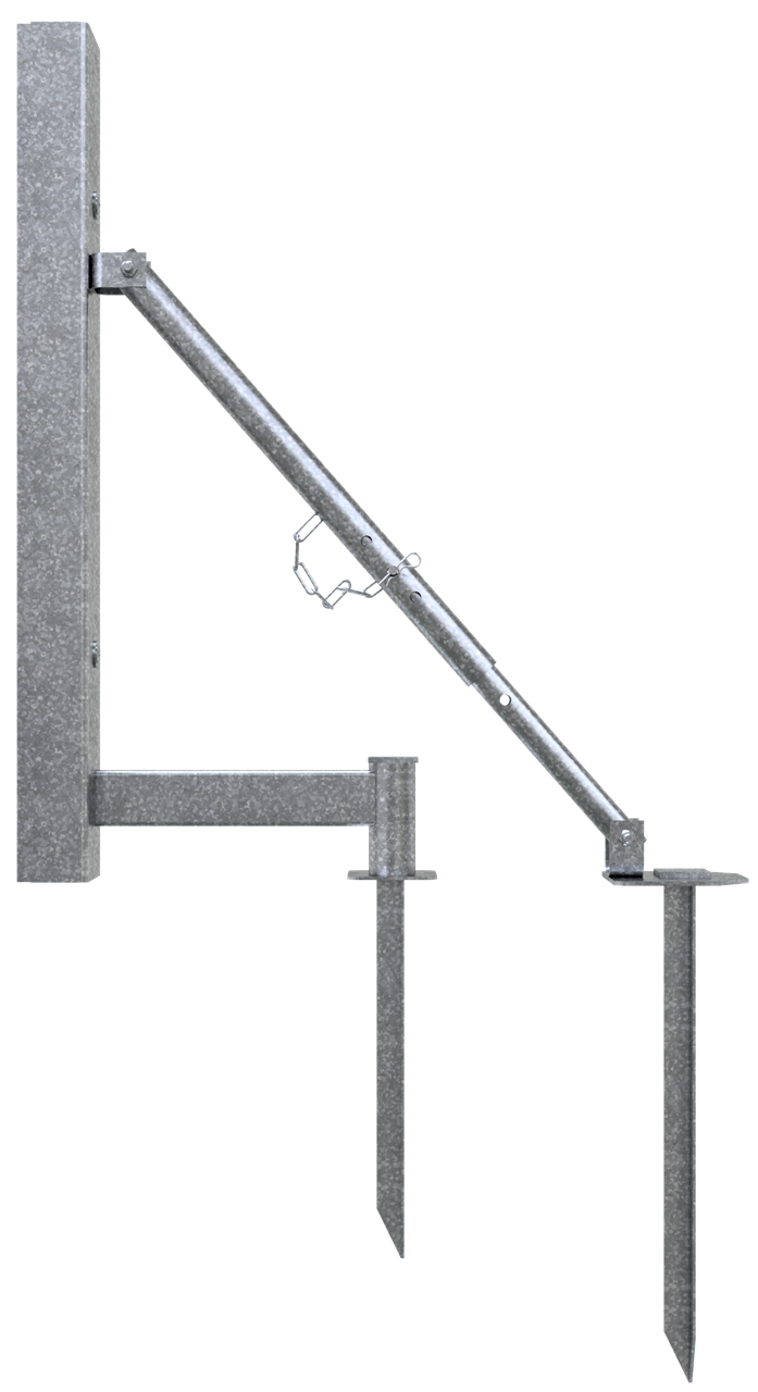 Abschalstütze bestehend aus: 1x Abschalstütze für horizontale Abschalungen (Art.-Nr. 111971_E) 2x Erdnagel 450 mm verzinkt (Art.-Nr. 30W80)