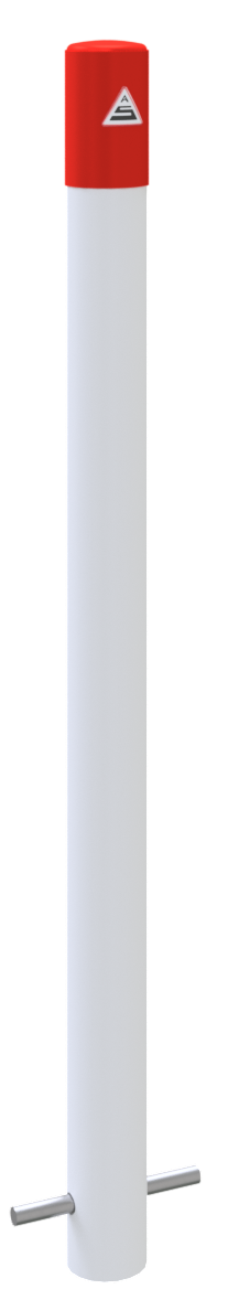 Feuerwehrleitpfosten Typ 4061B -ortsfest- zum Einbetonieren, Rundrohr 60 mm verzinkt und weiß beschichtet, Gesamtlänge 900 mm