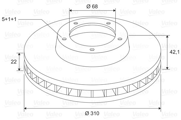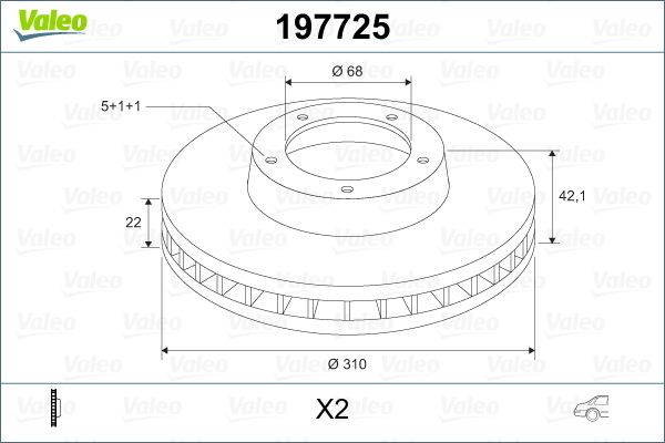 Einbauposition: HA · Bremsscheibenart: 8 · Außendurchmesser [mm]: 310 · Bremsscheibendicke [mm]: 22 · Zentrierungsdurchmesser [mm]: 68 · Höhe [mm]: 42.1 · Mindestdicke [mm]: 20 · Felge Lochzahl: 5 · Anzahl der Befestigungsbohrungen: 1 · Lochanzahl 1: 1 · Prüfzeichen: ECE-R90 · Gewicht [kg]: 13.92