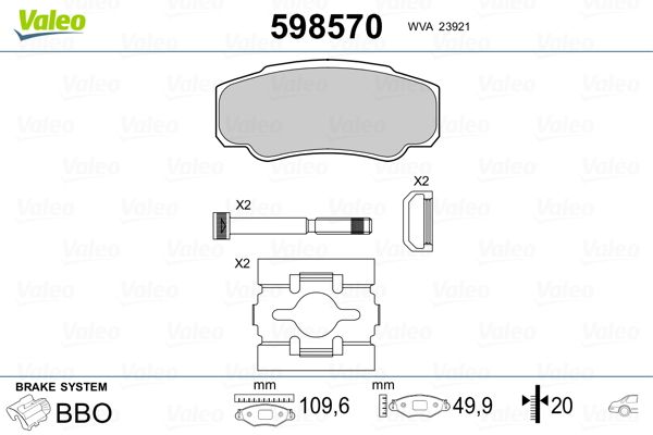 Product information "Valeo 598570 Bremsbelagsatz, Scheibenbremse"