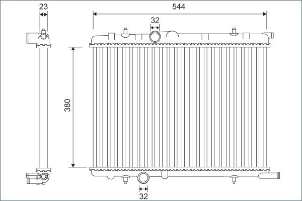 Netzbreite [mm]: 544 · Netzlänge [mm]: 380 · Netztiefe [mm]: 23 · Material: 1 · Gehäusetyp: 31 · Einlass-Ø [mm]: 32 · Auslass-Ø [mm]: 32 · Heizung/Kühlung: 54 · Ergänzungsartikel/Ergänzende Info 2: 857 · Gewicht [kg]: 3.45