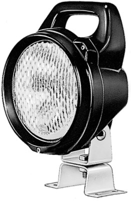 Zusammen mit dem speziellen Wabenmuster in der Streuscheibe ermöglicht der Parabolreflektor eine homogene Beleuchtung des Arbeitsfeldes im Nahbereich. Als Lichtquelle wird eine H3- Glühlampe verwendet (nicht bei allen Versionen im Lieferumfang enthalten). Der Arbeitsscheinwerfer kann (je nach Glühlampe) sowohl bei 12V- als auch bei 24V-Bordspannung benutzt werden. Das schwarze Gehäuse dieses robusten Arbeitsscheinwerfers besteht aus glasfaserverstärktem Kunststoff. Zum Schutz der Streuscheibe ist das Gehäuse an seiner Vorderseite mit einem hervorstehenden Rand versehen. Der Handgriff vereinfacht zusammen mit dem Schwenkfuß das Einstellen der Arbeitsscheinwerfer, so dass sich das Arbeitsfeld optimal beleuchten lässt. Der Bügel ermöglicht eine stabile Vierpunktbefestigung des Arbeitsscheinwerfers. Die Abdichtung der Kabeldurchführung erfolgt durch eine Tülle. Je nach Version bietet der Matador zusätzliche Vorteile wie Drehschalter (bei Versionen -001 und –031) oder Schutzgitter (bei Versionen -031 und –051). Der Artikel 1G4 003 470-141 eignet sich nur für stehende Montage, da der Stromanschluss über eine leicht lösbare Rohrstutzenbefestigung erfolgt, die auf Aufsteckrohre (Ø 24 mm) für Kennleuchten passt.