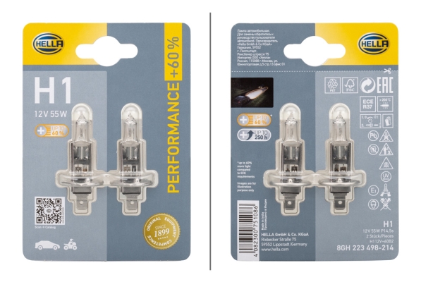 Produktinformationen "HELLA 8GH 223 498-214 Glühlampe - H1 - Performance up to 60% - 12V - 55W - Sockelausführung: P 14,5"