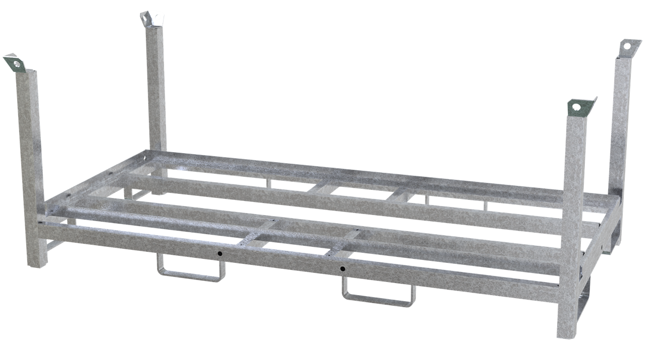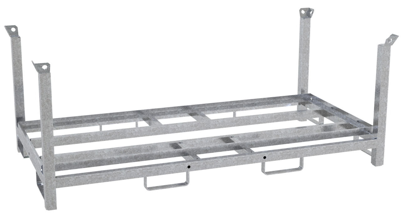· zur Aufnahme von bis zu 30 K1 Fußplatten · kombinierbar mit Lager- und Transporttraverse für Absperrschrankengitter (Art.- Nr. 32000) · Standrohre aus 60 x 60 mm und Querholme aus 60 x 40 mm Vierkantrohr · 4 - fach stapelbar · Ausführung: verzinkt Auch als fertig gepacktes Set erhältlich (Art.-Nr. 33420K-SET2).