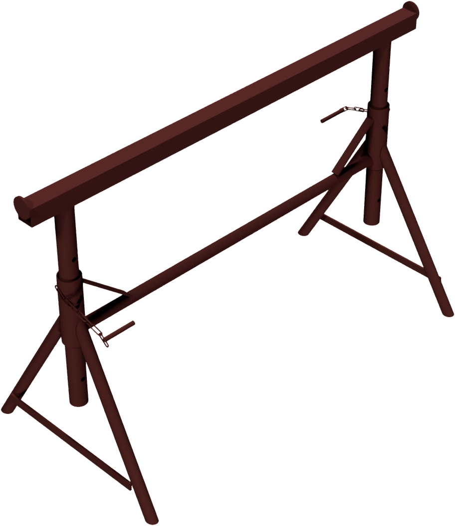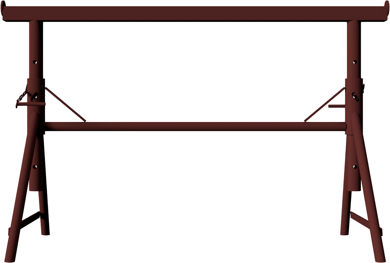 Putzergerüstbock „Combi N“ ·starre Stahlrohrkonstruktion mit Auflagetraverse aus 40 x 40 mm Vierkantrohr ·Höhenverstellbar in 4 Abstufungen im Arbeitsbereich von 0,55 - 0,90 m ·Lochabstand: ca. 10 cm ·Sicherung erfolgt durch das Einstecken der unverlierbaren Einsteckbolzen ·Breite der Auflagetraverse: 1,10 m ·Höhe: 0,55 - 0,90 m ·Ausführung: lackiert