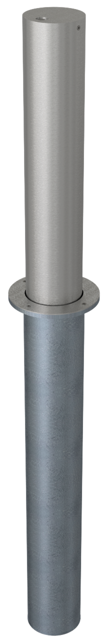 Edelstahlpfosten Ø 154 mm ·Höhe Überflur ca. 750 mm ·Tiefe Unterflur ca. 1000 mm ·mit Gasdruckfeder und Dreikantverschluss ·Oberfläche geschliffen ·inkl. feuerverzinkter Bodenhülse Ø 168,3 mm ·aus Edelstahl ·halbautmatisch, fährt durch Gasdruck hoch ·durch Dreikantverschluss zu Entriegeln ·leichtes Handling
